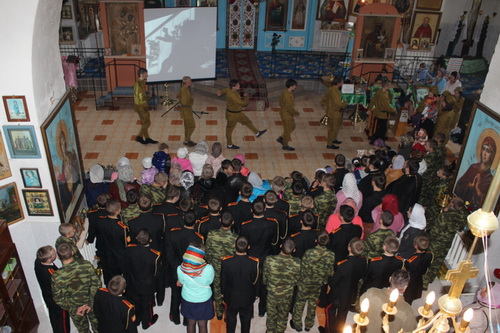 После Богослужения ребята из Бобруйска показали музыкальный спектакль "Пасха 45 года". После показа музыкальной  постановки, к паломникам  обратился Преосвященнейший Антоний со словами благодарности.  Владыка выразил надежду на дальнейшее сотрудничество.